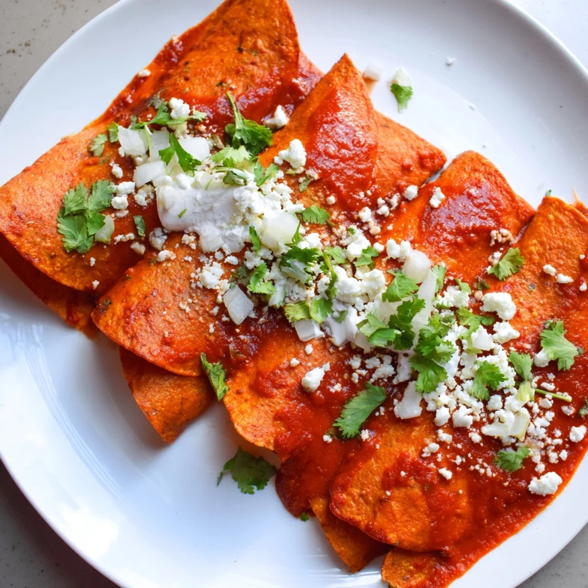 - Drizzle extra sauce over the top, then sprinkle with diced onion, cilantro, and additional cheese. Add a generous dollop of cream and serve immediately while everything is still warm.